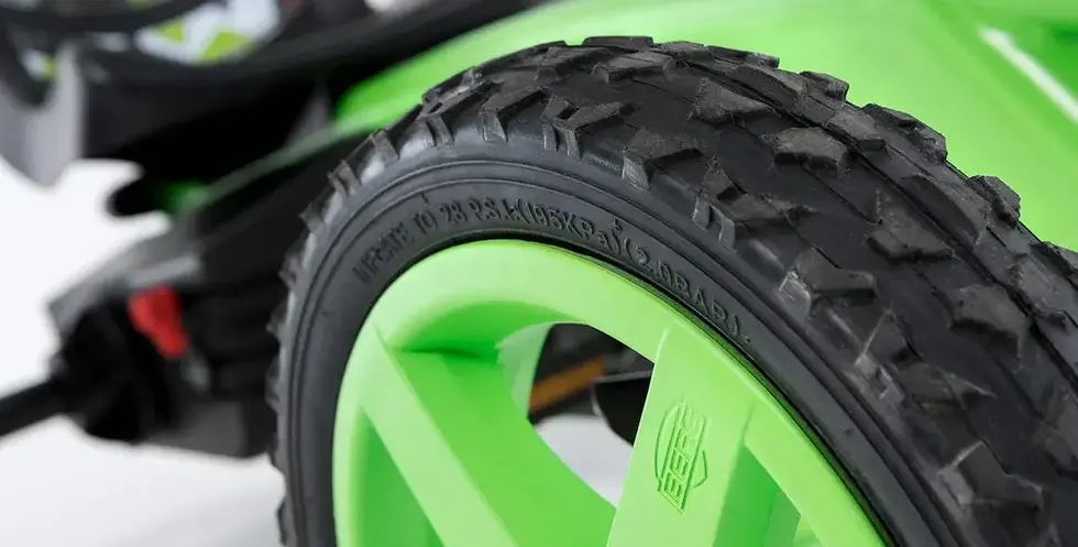 The Rally is the perfect go-kart for children aged 4 to 12. This fun and compact ride encourages outdoor play and adventure, whether your child is exploring the neighborhood or racing with friends. The BERG Rally Force stands out in vibrant colors and features a sleek front spoiler, making it the ultimate racing edition within the Rally series. The BFR system lets kids brake with the pedals and instantly reverse after stopping, enhancing both fun and safety. - Stylish green design - Ultimate racing edition with a cool front spoiler - BFR system for braking with pedals and reversing immediately after a stop - Durable pneumatic tires for a quiet, comfortable ride - Two trailer options available as accessories - Adjustable seat and steering wheel to grow with your child - Ideal for children aged 4 to 12