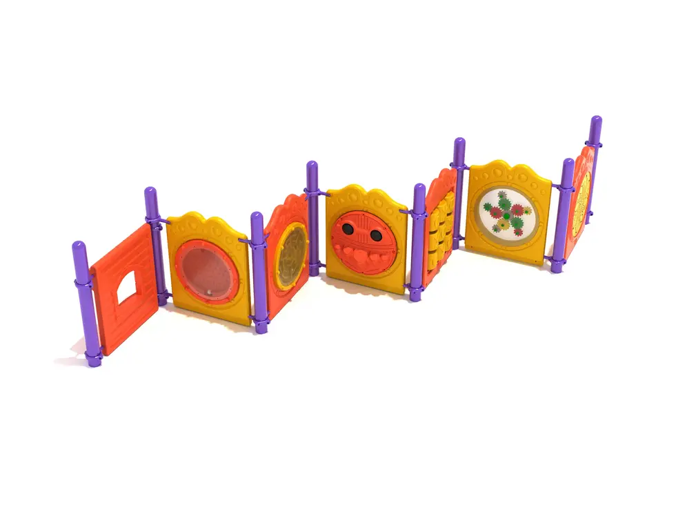 QUICK SHIP ITEM! Camp Walden is the perfect retreat for kids who want an escape from the hullabaloo of the playground. This corral of seven of our best activity panels has options for every child to enjoy, regardless of their age or level of physical ability. These activities are all great for kids to enjoy by themselves, but even better when played with a friend or two. The Tic-Tac-Toe and Plinko Panels bring games to your playground, so that kids can compete against each other. The Store Panel also provides a versatile base for all manner of imaginary activities. The simple Gear Panel provides another creative outlet for youngsters with a mind for mechanics. There are two different styles of maze panels for fun solitary challenges, and a percussion panel so that kids can underscore the whole area with rhythm. Best of all, the activities are all two-sided, so kids will never have to wait if their favorite activity is occupied. In stock items typically ship in 2-4 weeks. Installation not included. For an installation quote or any other questions, please contact Tarik Alherimi: tarik@pinestaterecreation.com