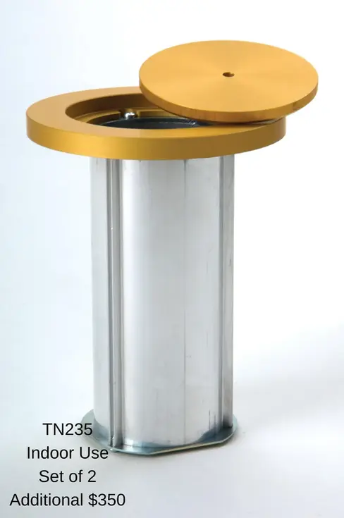 • Installation: Designed for permanent concrete installation or optional socket systems—TN23 (indoor) or TN235 (outdoor)—shown in the socket image above and selectable within this listing