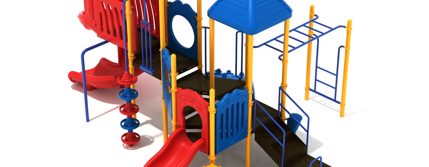 QUICK SHIP ITEM! The Cooper’s Neck play structure is a perfect way to keep kids active and entertained during playtime. They can get some exercise while reaching the upper decks of the structure by swinging from the Overhead Straight Rung Horizontal Ladder, climbing vertically up the Pod Climber, or scaling detailed nautical patterns of the arched Sea Creature Climber. The play structure contains two awesome slides for kids to enjoy. The impressive 66-inch Spiral Slide is an exciting feature which spins children around as they slide toward the bottom. For younger children, or those who want a gentler ride before they work their way up to the Spiral Slide, there is a 3-foot Wave Slide. The top of the structure has a Bubble Window Panel, which gives children a perfect view of the playground, and all their friends. Below that, there is a Gear Panel, with colorful spinning wheels that kids can turn. In stock items typically ship in 2-4 weeks. Installation not included. For an installation quote or any other questions, please contact Tarik Alherimi: tarik@pinestaterecreation.com