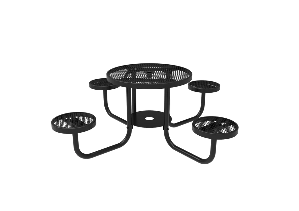 Diamond Pattern Round Patio Table with Attached Seats The Diamond Pattern Round Patio Table with Attached Seats is a stylish and functional addition to any outdoor space. Perfect for intimate gatherings, it comfortably seats up to 4 people with its 36-inch diameter tabletop, fostering closeness among guests. Durable & Weather-Resistant : Built to withstand wear and tear, the table features a lightweight steel surface that’s resistant to various weather conditions. Easy to Maintain : Requires minimal upkeep, making it ideal for public parks and private settings. Safe for All Ages : With no sharp edges, it’s safe for kids to play around, and the ADA-compliant design ensures accessibility for everyone. Versatile & Portable : Perfect for patios, backyards, and events, its lightweight structure makes it easy to move and rearrange as needed. Customizable Colors : Available in a variety of vibrant colors, you can easily match the table to your outdoor decor or create a fun, unique atmosphere. This Diamond Pattern Round Patio Table combines design, comfort, and practicality for a wide range of outdoor activities.