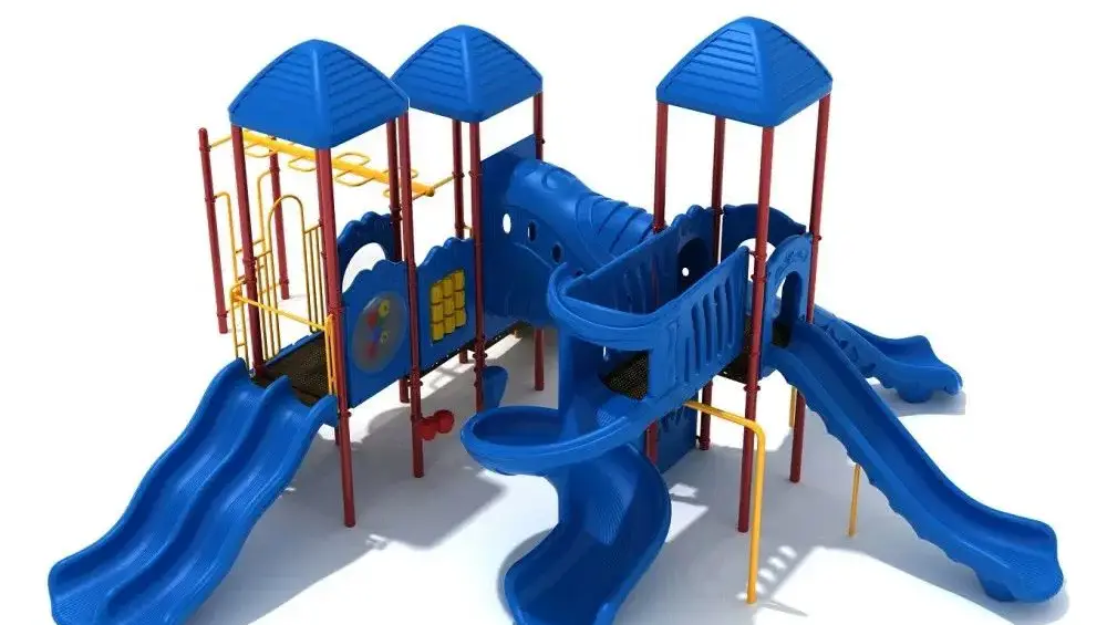 Electric City is a playground full of adventure and imaginative play, featuring a variety of slides and interactive panels. Here’s a quick look at what makes it so exciting: Slides : 5 Slides : A mix of thrilling slides, perfect for races and endless fun. Climbing Challenges : Figure & Overhead Snake Climbers : These climbers add a mountaineering challenge, ideal for adventurous kids. Funnel Tube Bridge : A secret passage and lookout point for imaginative play and hiding from the sun. Interactive Panels : Bubble & Gear Panels : Encourage creative play, turning the playground into a fantasy world. Tic-Tac-Toe Panel : Perfect for friendly intellectual competitions and breaks from physical play. Imaginative Play : Kids can pretend to be pirates, explorers, or city builders, with the Funnel Tube Bridge as their base camp and Jumanji-like jungle adventures using the slides and climbers. With its mix of physical challenges and creative opportunities, Electric City offers endless fun for kids, making it a go-to spot for play, exploration, and friendly competition.