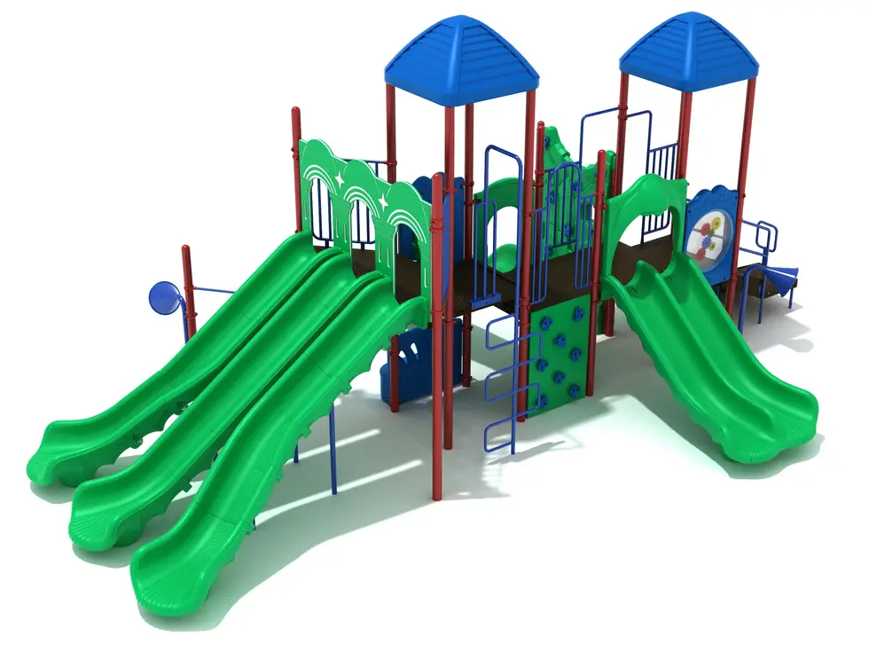 The Lancaster playground system is a bold, high-capacity play structure designed to anchor mid-sized to large playgrounds with energy and variety. With multiple entry points, diverse climbing challenges, and an impressive collection of slides, it invites children of all skill levels to explore, stay active, and engage in imaginative play for hours.