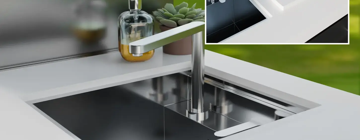 Built-In Sink: Stainless steel with removable marble cover for additional workspace