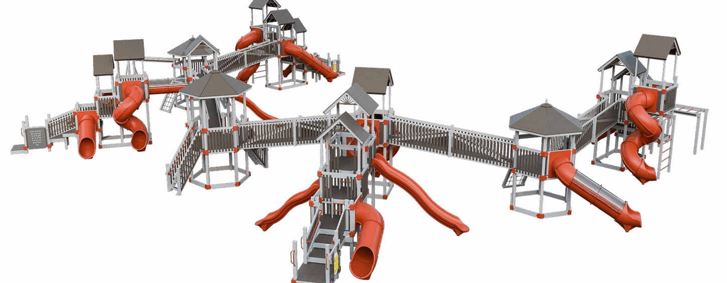 Step into a world of epic exploration with The Mighty Adventure, our most expansive commercial playset ever. Designed for high-volume use and packed with thrilling features, this colossal structure invites children to climb, slide, and imagine like never before. With a web of interconnected towers, ADA-accessible entry points, and 13 exhilarating slides, this playground supports inclusive, energetic, and cooperative play on a grand scale. Whether scaling bridges or racing down turbo twisters, kids will build physical skills, social confidence, and lasting memories.