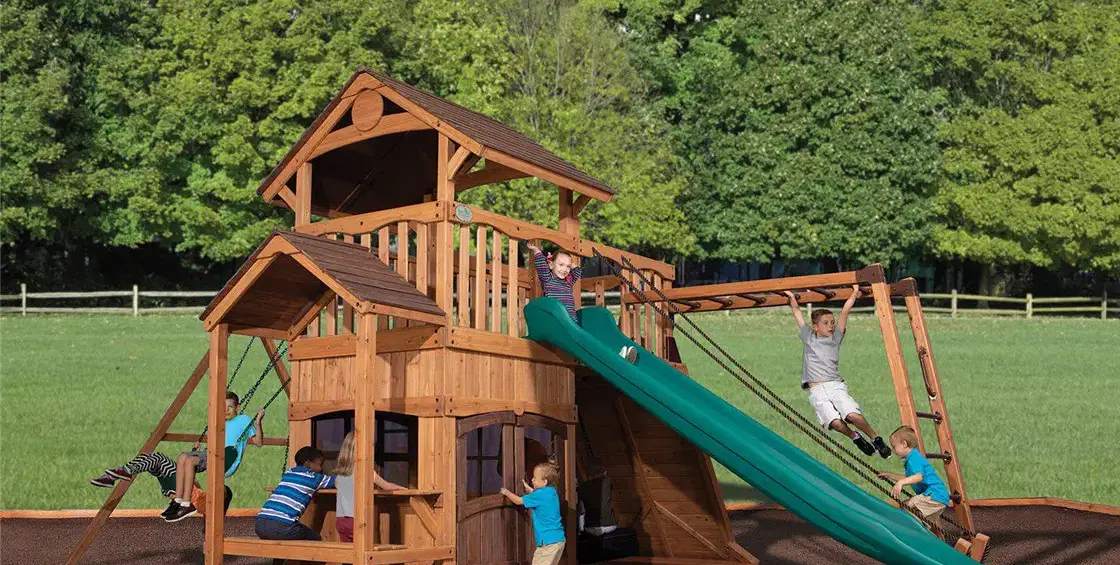 The Olympian Outlook XL 4 Swing Set is the ultimate play system in the Summit Outlook series, bringing together the best features into one expansive design. With high decks, multiple play zones, and exciting accessories, it offers endless adventure and lasting quality for kids of all ages.