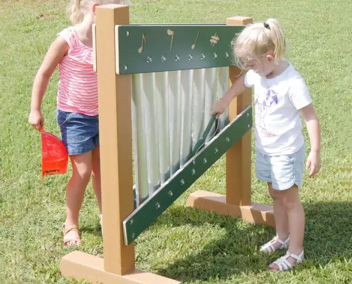 The Recycled Plastic Chime Wall transforms any play area into a musical adventure, helping children explore rhythm, sound, and creativity through hands-on play.