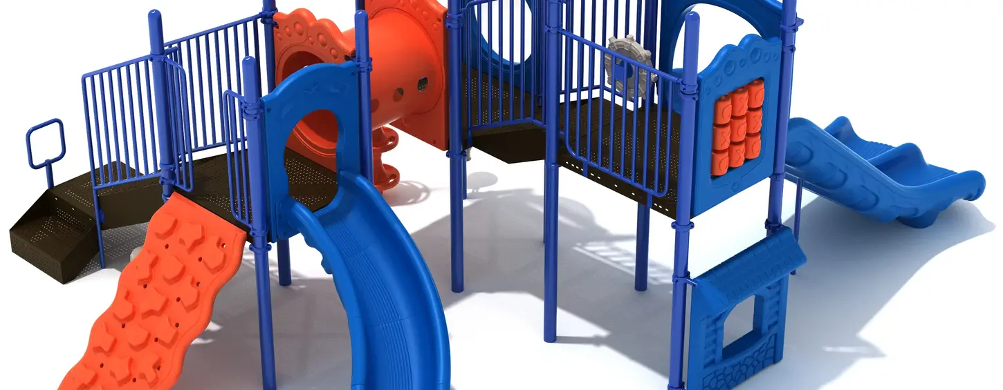 The Rose Creek Play System delivers a lively mix of climbing, sliding, and interactive play elements that keep children moving and engaged. Designed to spark imagination and encourage active exploration, this structure blends physical challenges with creative features that support social play and problem-solving. Whether kids are racing down slides, crawling through the bridge, or pretending to captain a ship on the upper deck, Rose Creek creates an exciting play environment suited for parks, schools, and community spaces.
