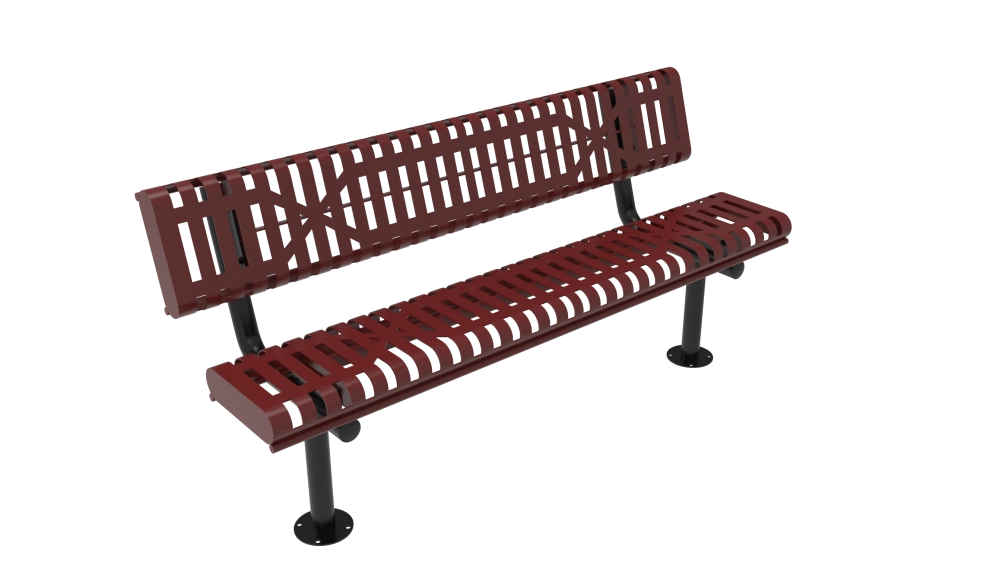 Slatted Steel Rolled Bench with Back The Slatted Steel Rolled Bench with Back combines sleek design with superior comfort, making it an excellent choice for any outdoor seating area. Crafted from steel straps, both the seat and back offer lasting durability and comfort, while the space between the slats allows for airflow — keeping the bench cool, especially during hot summer months. Comfort & Design : The slatted steel design ensures ventilation, making it perfect for use in warmer climates. The backrest and seat, though separate, are made from the same material for a unified and stylish look. Durable & Long-Lasting : Built to withstand heavy use without signs of wear, the Slatted Steel Rolled Bench with Back is an investment that will endure for years. Customizable & Versatile : Available in multiple coating options and a wide variety of color choices , so you can match it with the aesthetic of your park, campus, or other outdoor settings. Flexible Installation : Choose from in-ground , surface , or portable options, depending on your setup needs. Ideal for high-traffic areas, this bench is both functional and stylish, offering a comfortable resting spot for people while blending seamlessly into its surroundings.