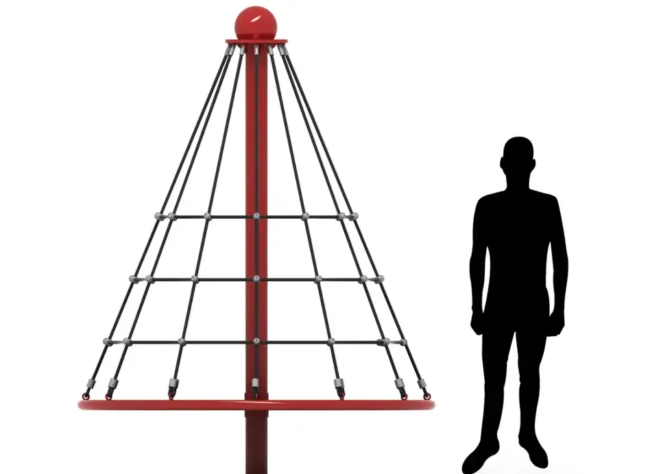 The Starship Orbiter is a fun, innovative combination of a merry-go-round and rope climber, offering two exciting experiences in one. Kids can test their climbing skills on the exterior ropes, which move as they climb, challenging their balance and coordination . This dynamic play encourages physical development and confidence in navigating moving surfaces. On the inside, kids can enjoy the merry-go-round experience, spinning with friends. A small door near the ground level gives easy access to the orbiter, making it easy for kids to switch between activities. Since the Starship Orbiter requires teamwork to get it spinning, it also promotes social interaction and cooperation. Ideal for kids seeking both physical challenges and fun, this playground feature is sure to be a hit!