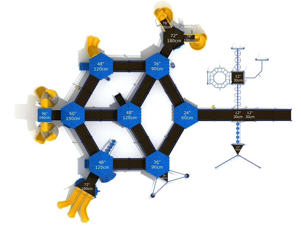 Tallgrass Prairie is one of the largest fully accessible playgrounds available, designed to welcome hundreds of children at once. With spacious ADA ramps, wide decks, and an incredible variety of slides, climbers, and spinners, it ensures every child can join the adventure.